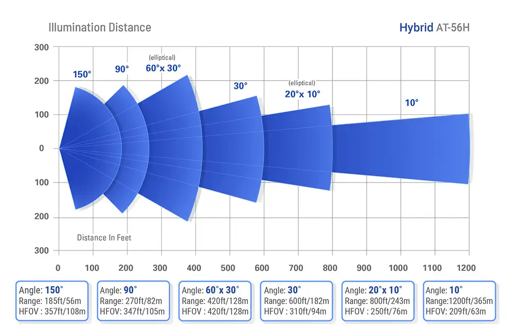 NOTE: Above Ranges are for IR light the White Light Range will be increased by 20%.
