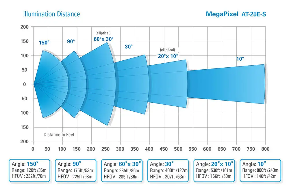 MegaPixel 25E PoE IR Illuminator – Beam Angle Options & Ranges